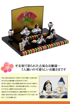 全体サイズ全体(横幅15.5×奥行21×高さ11cm)女雛サイズ女雛(高さ4cm)素材陶器セット内容お雛様・三人官女・ぼんぼり(一対)・菱餅(一対)・屏風・飾り台・箱入り注意事項製作面での都合上、生地の柄がお写真と異なる場合がございますがご了承ください。